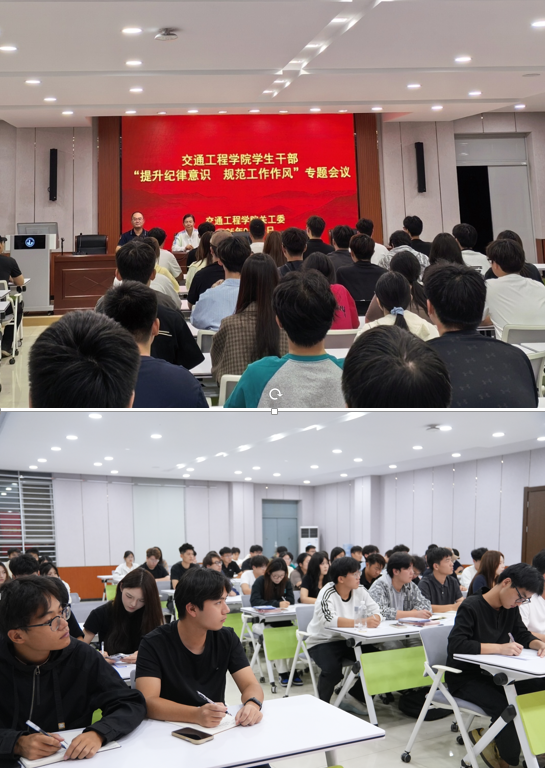 为进一步强化学生干部的责任意识与工作规范,9月25日晚,交通工程学院关工委在利亚楼报告厅召开“提升纪律意识,规范工作作风”专题会议。学院关工委常务副主任赵武、关工委副主任李珂出席会议并作专题讲解,全体学生干部参加会议。