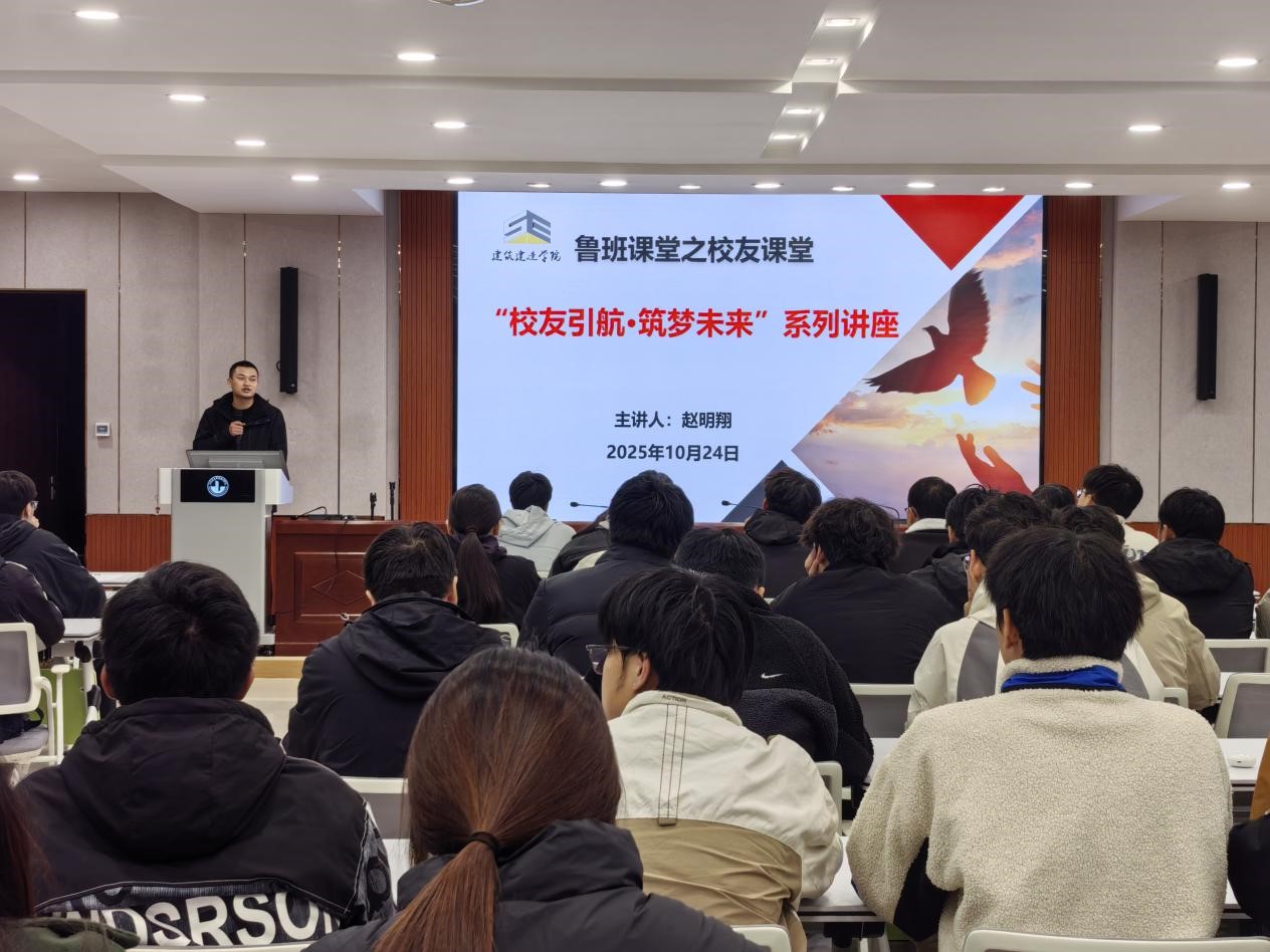 10月24日晚,建筑建造学院关工委在利亚楼报告厅举办鲁班课堂“校友引航•筑梦未来”系列讲座第三场,邀请了2022届优秀校友、全国大学生年度人物、全国向上向善好青年、江苏省最美大学生、中国核工业华兴建设有限公司基础事业部团委委员赵明翔担任主讲嘉宾,学院学生党员、入党积极分子、青马培训班成员和主要团学干部参加讲座。