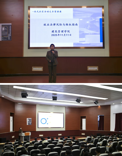 近日,建筑管理学院关工委在大学生发展中心创翼学堂开展普法讲座。本次讲座以“就业法律风险与维权指南”为主题,特邀朱婉婉律师来校,为同学们讲解求职应聘中的法律知识。