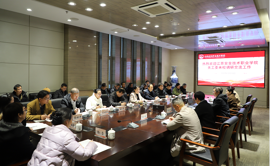 12月10日下午,江苏安全技术职业学院党委委员、关工委秘书长薛莲等一行26人,来我校开展关工委工作调研交流。校关工委常务副主任任留钦出席会议,关工委副秘书长刘欣欣,常务副秘书长刘亚峰及二级学院关工委负责人等参加座谈交流,会议由刘欣欣主持。