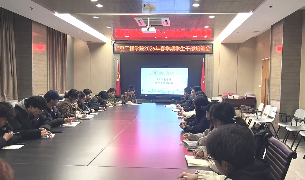 3月12日,信电工程学院2026年春学期学生干部培训会在图书馆404会议室举行。学院副书记、关工委副主任白金一,秘书长孟扬,全体辅导员及全院团学干部参加会议,会议由孟扬主持。