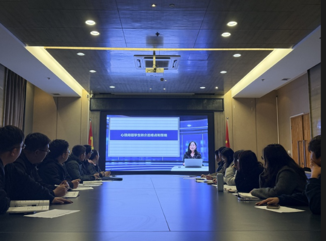 参会人员集中观看了中国人民大学周莉教授关于《心理问题学生转介的难点和策略》的讲座视频,主讲人针对易出现的学生认知偏差、沟通衔接不畅、家校协同困难等实际问题,通过典型案例复盘、场景化模拟分析的方式,逐一拆解问题症结,给出具体、可落地的解决策略。