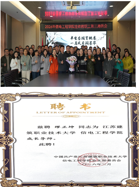 3月24日,信电工程学院关工委为缪正坤教授举行退休仪式,对他过去工作所付出的辛勤和贡献表达感谢。学院领导为缪正坤老师送上退休礼物和鲜花,并聘请他为学院关工委学生成长导师,希望他能继续关注学院的发展和学生的培养,把爱岗敬业的职业精神和精益求精的学术钻研精神继续传递给后辈。(信电工程学院关工委)