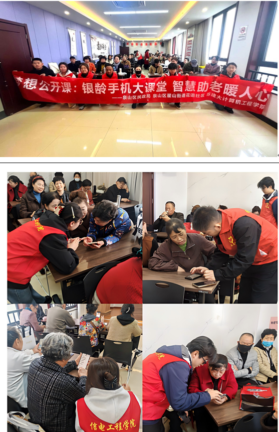 为弘扬雷锋精神,帮助社区老年人跨越“数字鸿沟”,3月31日,计算机工程学院关工委组织学院青年志愿者协会和“信小助”社团的同学走进徐州市泉山区翟山街道花语社区,联合泉山区民政局、花语社区共同开展“银龄手机大讲堂,智慧助老暖人心”志愿服务活动。