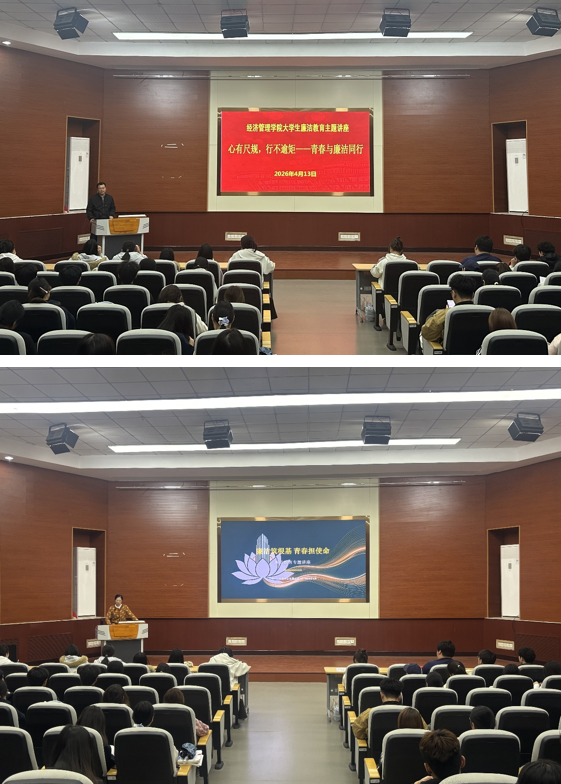 为深入贯彻落实《关于加强新时代廉洁文化建设的意见》精神,引导青年学生扣好人生的“第一粒扣子”,4月13日晚,经济管理学院关工委在创翼学堂举行“心有尺规,行不逾矩——青春与廉洁同行”廉洁教育主题讲座。校纪委办公室程宝珏老师应邀作题为《廉洁筑根基 青春担使命》的专题讲座。学院关工委副主任崔廷锋主持,第62期入党积极分子及学生干部代表共70余人参加。